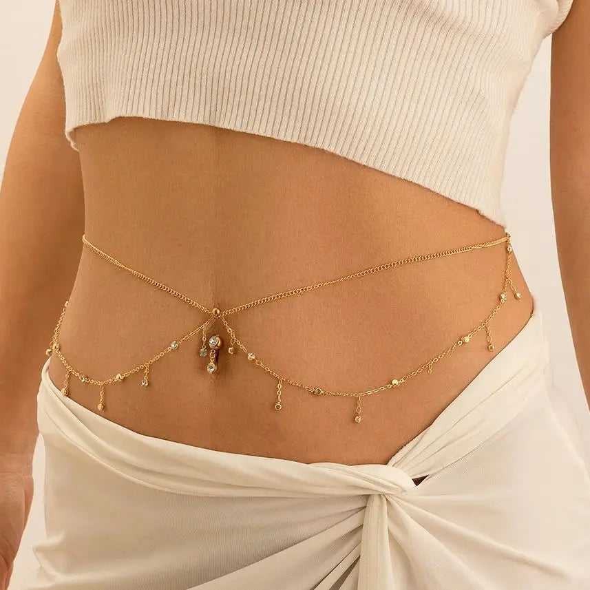 This bohemian-style belly chain features a unique geometric design crafted from metal, making it a fashionable accessory for women who love bold and stylish body jewelry. Perfect for adding a chic, trendy touch to your outfit, this piece combines elegance with a playful, modern aesthetic.